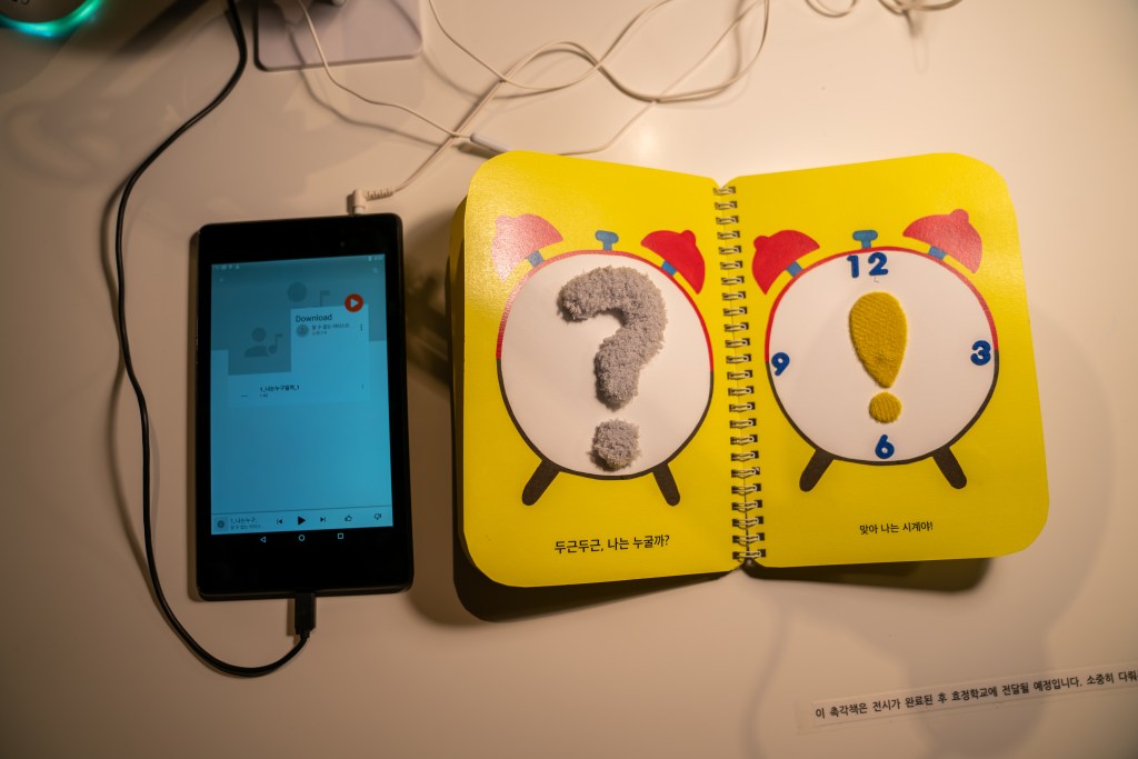 The pieces were created in collaboration with Storycoam, the story contents production company with Chaeknuna Project who has many years of experience in reading books for blind children. It was created to raise an awareness for the blindness and to provide story contents for blind children to sympathize. The contents are provided for free through the Naver Audio Clip service.